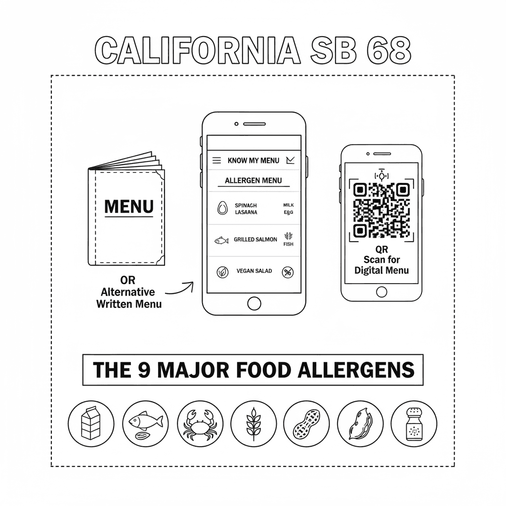 California is mandating a new law in dining transparency! The new SB 68 law requires restaurant chains (20+ locations) to clearly identify the top 9 major food allergens on their menus, starting July 1, 2026. This law allows compliance via on-menu labels, QR codes, or allergen charts. It is also an opportunity to boost customer trust, reduce liability, and gain a competitive edge in inclusive dining.