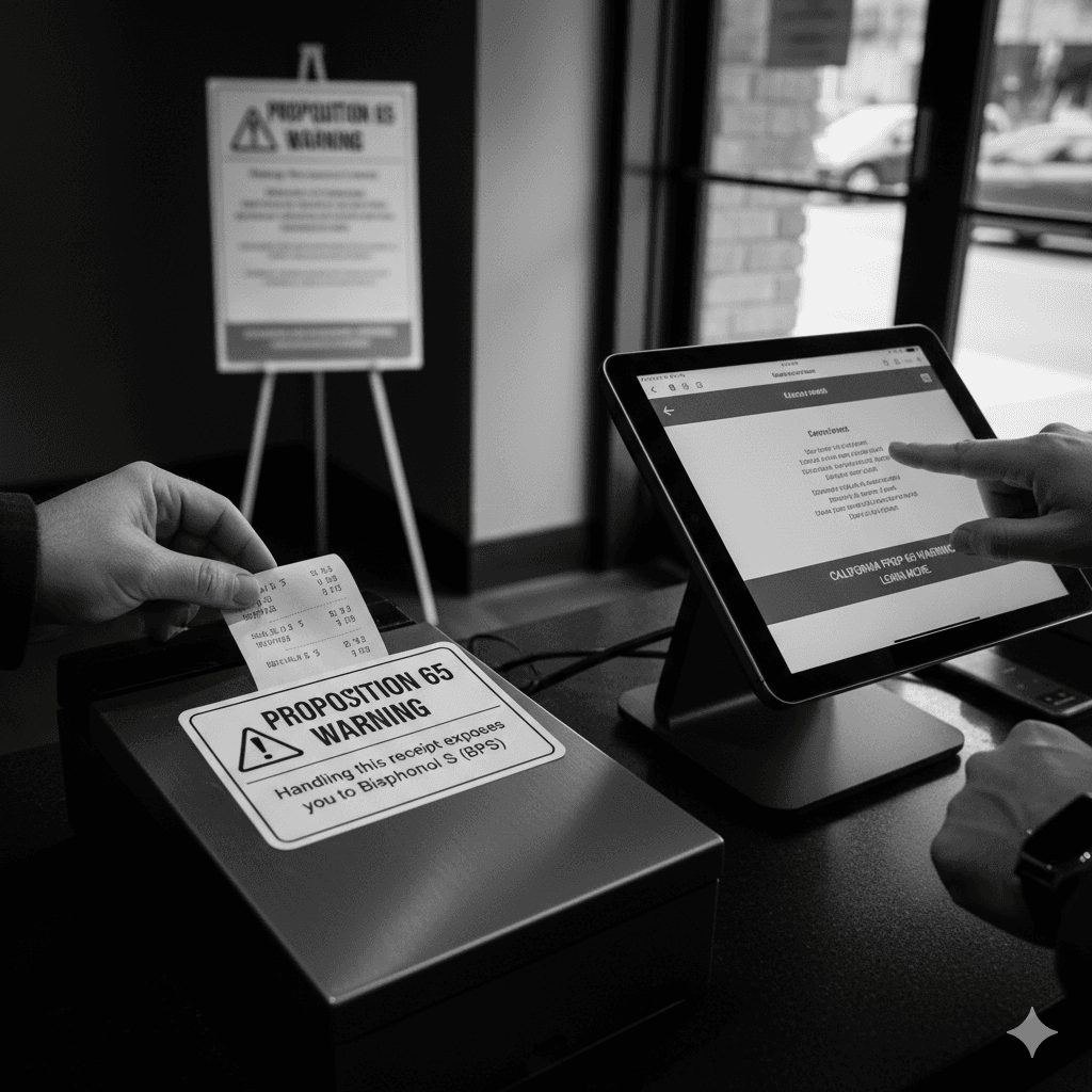 California's Proposition 65 is increasingly complex for restaurants, now requiring distinct signage not just for food and cooking-related exposures, but also for Bisphenol S (BPS) found in common thermal receipt paper.